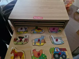 Cajón de madera con 3 puzzles de encaje de la marca Juguettos Nenittos. - Incluye 3 puzzles de madera. - Cada puzzle tiene piezas con clavijas para facilitar el agarre. - Ayuda a afianzar aprendizajes intuitivos. - es para partir de 12 meses