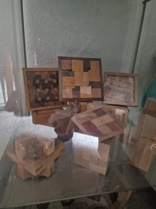 Conjunto de juegos de ingenio fabricados en madera. - Diversos diseños y formas. - Ideal para coleccionistas o aficionados a los puzzles.