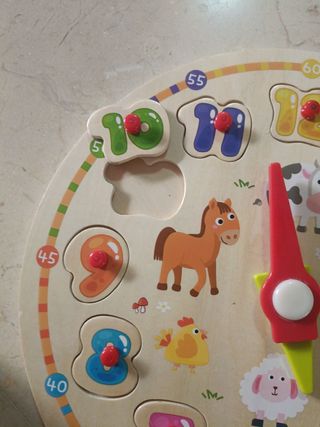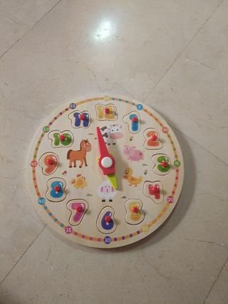 Bien reloj para que tú niño se familiarice con las horas y los minutos. De madera