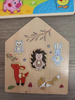 Set de 5 puzzles de madera para que los más pequeños de la casa desarrollen su psicomotricidad jugando. En muy buen estado todos.