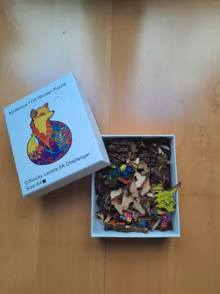 Puzzle de madera con diseño de zorro misterioso. - Dificultad: Nivel 5A Challenger. - Tamaño: A4.