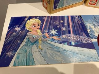 Set de dos puzzles de la película Frozen, fabricados en madera. - Incluye dos imágenes diferentes de los personajes. - Cada puzzle tiene 25 piezas.