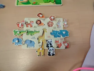 Juego de puzzles de madera con temática de animales y números, ideal para el aprendizaje temprano. - Piezas de madera con ilustraciones de animales. - Incluye números para asociar. - Fomenta el desarrollo cognitivo y la motricidad fina.