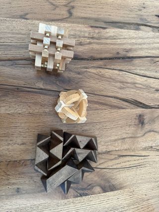 Juego de ingenio y puzzle fabricado en madera. Un desafío para la mente con un diseño clásico. - Piezas de madera. - Diseño de puzzle.