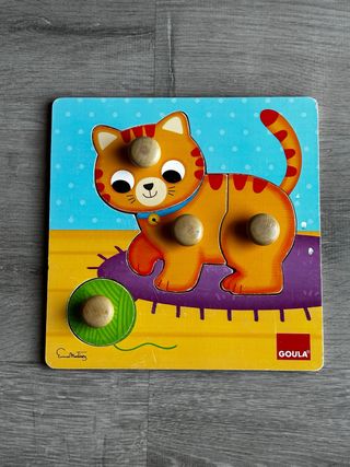 Pack de 4 puzzles de madera de la marca Goula. Cada puzzle tiene un diseño diferente y piezas grandes con pomos para facilitar su agarre. - Puzzles de madera. - Incluye 4 puzzles. - Marca: Goula.