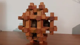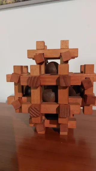 Juego de ingenio de puzzle de madera con un diseño intrincado. Contiene esferas en su interior. Este artículo ha sido donado a la Asociación Protectora de animales SOS Bilbao para su venta solidaria. Con lo recaudado se colabora para cubrir los gastos derivados del cuidado de los animales rescatados por esta Asociación.