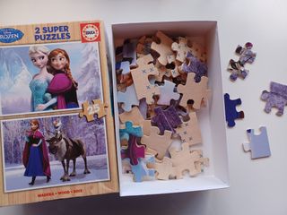Set de dos puzzles de la película Frozen de Educa. - Cada puzzle tiene 25 piezas. - Ilustraciones de los personajes de Frozen. - Fabricados en madera.