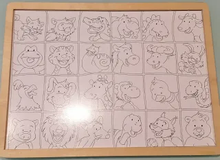 Juego de puzzle magnético con temática de animales y pizarra. - Incluye piezas de imán para crear diferentes composiciones. - Pizarra de madera. - Material: madera natural. El marco de madera está pintado, ver foto, pero totalmente utilizable