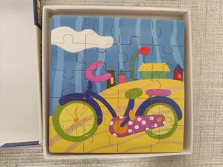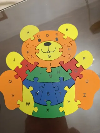 No se vende por separado. Juguetes de madera para niños pequeños. Son ideales para desarrollar habilidades motoras y el aprendizaje. - Incluye 6 puzzles de madera con diferentes temáticas (animales, formas geométricas, planetas). - Un juego de cuentas y bloques de madera de colores para ensartar. - Los puzzles están en buen estado, con piezas completas y resistentes. - Los juguetes son de madera, de colores vivos y atractivos para los niños.