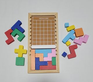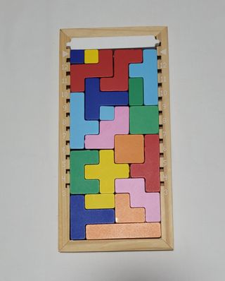 Puzzle Tetris de madera con piezas de colores. Con 11 niveles de dificultad. Ideal tanto para niños como para adultos.