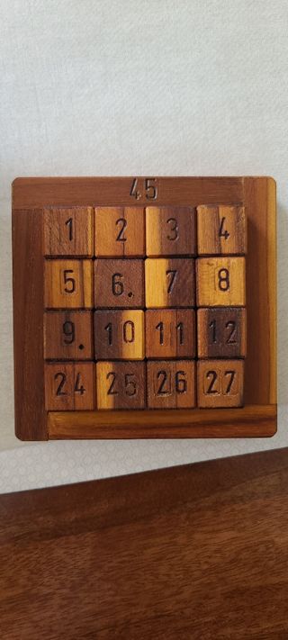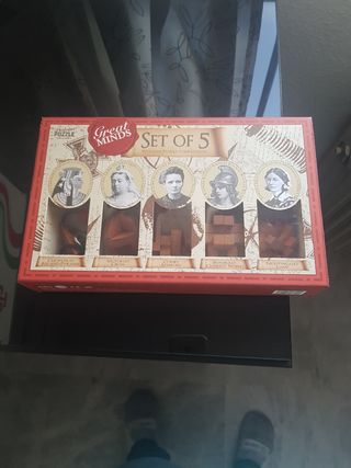 Bonito juego de madera de 5 puzzles de lógica, para estar horas dándole vueltas solo o en familia. Hay 1 deshecho. La caja está muy bien, ver fotos de las esquinas.