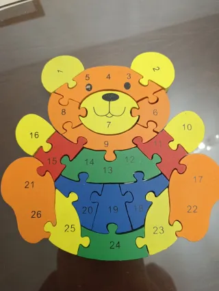 Puzzle de madera con números del 1 al 20. - Piezas de madera con números coloridos. - Diseño educativo para aprender los números. Solo entrega en mano.