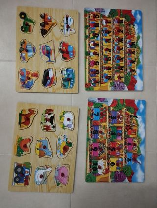 Divertido juego de encajar y pinchos con 12 diseños Puzzle encajables madera granja (con sonidos de los animales) Puzzle encajable vehículos. - Fomentan la coordinación mano-ojo y la motricidad fina. En perfecto estado