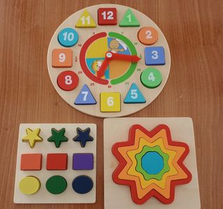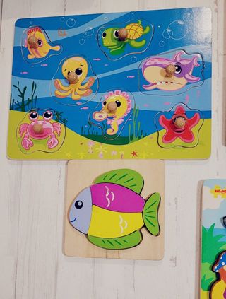 Set de 3 Puzzles. El encajable de madera está sin estrenar, los otros son de cartón, uno casi no se ha usado.
