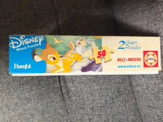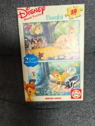 Pack de dos puzzles de madera de Disney con Bambi. Cada puzzle tiene 50 piezas. ver fotos - Licencia oficial Disney. - Ilustraciones de Bambi y sus amigos. - Fabricados en madera.