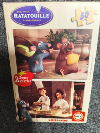 Pack de dos puzzles de la película Ratatouille de Educa. En madera - Cada puzzle tiene 50 piezas. - Diseño basado en la película de Disney Pixar.