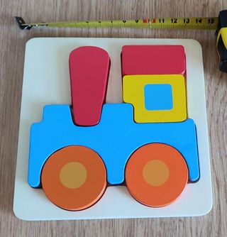 Puzzle de madera de la marca Playtive con formas geométricas. - Incluye elementos triangulares. - Basado en la pedagogía Montessori. - Edad recomendada: 11 meses en adelante. Se regala puzzle peppa pig.