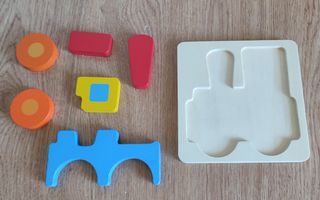 Puzzle en forma de tractor. Tiene defectos en la madera pero no impide el juego.