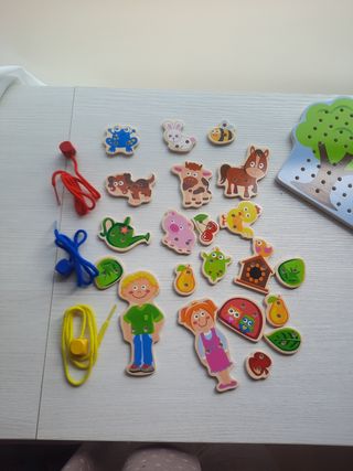 Sin estrenar! Para unos 3 añitos! Se suelen entretener mucho con estos apilables de madera con formas y puzzles.. 10 los 3.. y 3,50 cada uno!