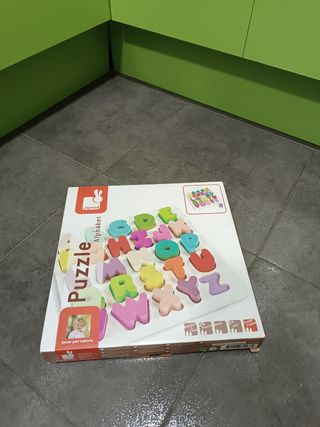 Puzzle de madera para formar letras y figuras. Aprenden formas y colores.