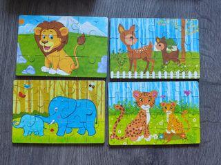 Juego de 4 puzzles de madera de la marca Nenitos. Cada puzzle tiene 24 piezas. Son ideales para niñ@s. Los puzzles están en buen estado y listos para jugar. - 4 puzzles de animales de granja y otros animales. - 24 piezas cada uno. - Madera resistente.