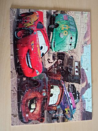 Puzzle de Cars de 100 piezas, de madera. Está en buen estado. - 100 piezas. - De madera. - Basado en la película Cars de Pixar.
