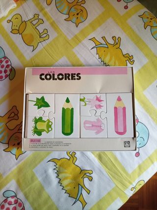 Puzzle en madera .Para aprender los colores y primeras palabras.