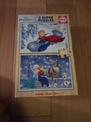 Pack de dos puzzles de la película Frozen de Disney. - Incluye dos imágenes diferentes de los personajes. - Cada puzzle tiene 50 piezas. - Fabricados en madera.