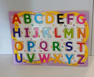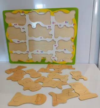 Divertido puzzle de madera con las letras del abecedario en mayúsculas. - Piezas de madera resistentes. - Diseñado para el aprendizaje de las letras. - Colores vivos y atractivos.