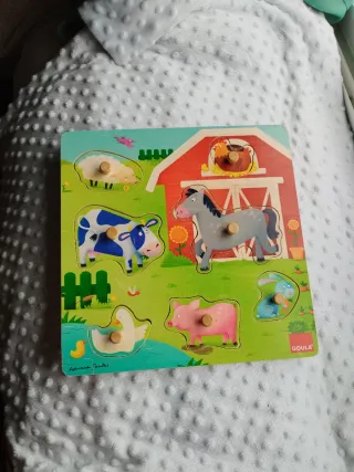 Puzzle de madera con temática de animales de granja de la marca Goula. Ideal para los más pequeños. - Incluye piezas de animales como oveja, vaca, caballo, gallina, pato, cerdo y conejo. - Diseño colorido y atractivo. - Fabricado en madera resistente.