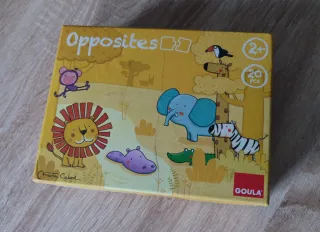 Divertido puzzle de madera de la marca Goula para aprender los opuestos. Incluye 20 piezas. - Ilustraciones de animales de la selva. - Diseñado por Marta Cabrol. - Recomendado para mayores de 2 años.