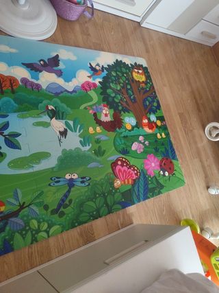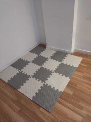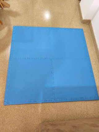 Se venden piezas de suelo de goma EVA con acabado tipo puzzle. Cada pieza mide 60x60 cm y son ideales para crear superficies acolchadas y seguras. Se venden conjuntamente los 2 paquetes o de forma individual. Cada paquete está compuesto por 6 piezas de diferentes colores y su precio es de 20€. - Material: Goma EVA. - Colores: Verde, rojo, azul y amarillo. - Diseño: Piezas entrelazables. Se venden en persona. Interesados ponerse en contacto. Muchas gracias.