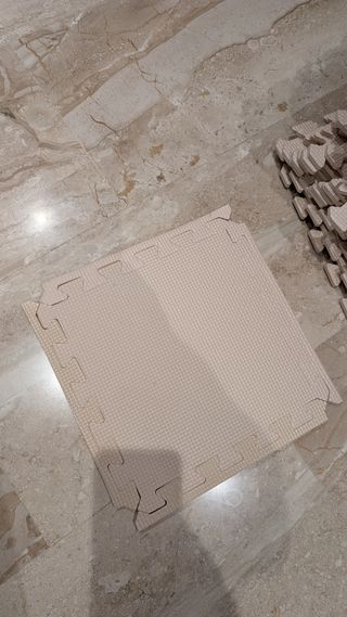 Pack de 40 piezas de suelo puzzle para bebé. Son ideales para crear un área de juego segura y cómoda. - Cada pieza mide 30x30cm. - Color beige. Algunas de las piezas, pocas, están un poco marcadas