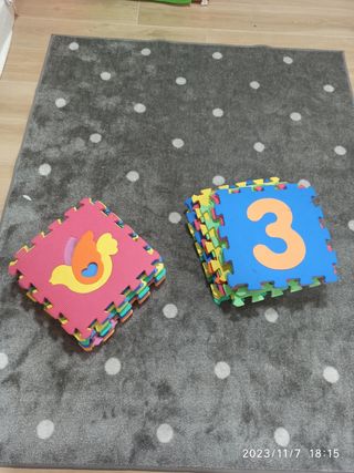 Dos puzzles de goma Eva, sirve de alfombra, aíslan del frío del suelo y a la vez es un juego para los niños. En total son 3O piezas. 15 euros cada uno, los dos 25 euros.