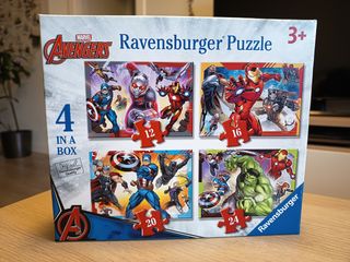 Pack de 4 puzzles de los Vengadores de Ravensburger. - Incluye 4 puzzles diferentes con personajes de Marvel. - Ideal para fans de los Vengadores. - Edad recomendada: 3+ años.