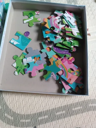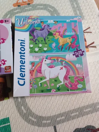 Set de dos puzzles de la marca Clementoni con temática de unicornios. Cada puzzle tiene 20 piezas. - Ilustraciones coloridas de unicornios. - Incluye dos puzzles de 20 piezas cada uno. - Recomendado para mayores de 3 años.