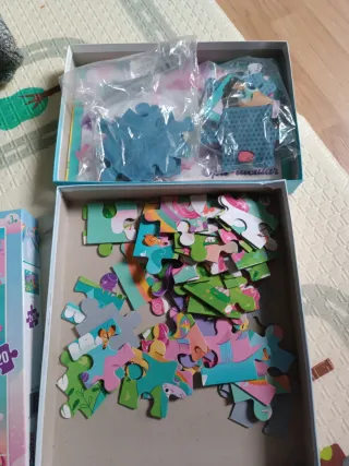 Puzzle de Imaginarium con temática espacial. 100 piezas,Adidas 40cmx50cm. Viene en una caja tipo cofre con cierre, en perfectas condiciones. Piezas de cartón resistentes, en muy buen estado. Solo hay unas poquitas con la parte trasera un poco rozada, pero la parte visible del puzzle está perfectamente como se ve en la foto.