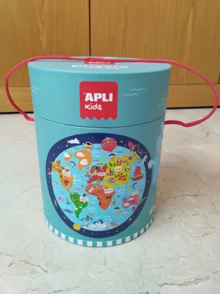 Puzle circular con temática Mapamundi. Incluye 48 piezas de diferentes tamaños. Presentación en caja cilíndrica de cartón con asa de 205 x Ø 150 mm. Tamaño del puzle: Ø50 cm. Contiene un póster a tamaño real para facilitar el montaje. Una vez el puzle esté montado, los niños podrán descubrir los diferentes continentes y océanos de nuestro planeta. Puzle que ayuda a los niños a familiarizarse con el planeta Tierra en un entorno de juego. Fácil manejo para los más pequeños: piezas resistentes, seguras y fáciles de manejar. Cartón de 2 mm de grosor.