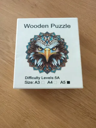Puzzle de madera con un diseño de águila mandala. - Dificultad: 5A - Tamaño: A5 Hay que recogerlo en San Juan playa. Wallapop no deja enviar productos que se regalan.