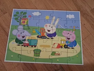 Dos puzles de madera de Peppa Pig, cada uno con 16 piezas. Están en buen estado, aunque algunas piezas pueden presentar ligeras marcas de uso. Ideales para niñ@s. - 2 puzles de la serie Peppa Pig. - Material: Madera. - 16 piezas cada uno.