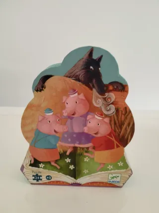 Puzzle Los Tres Cerditos. Puzle de 24 piezas para niños con piezas grandes de cartón. Editorial Djeco. Infantil, regalo, juego, juguetes, Navidad, Halloween, Black friday, oferta, descuento, Disney, cuento,