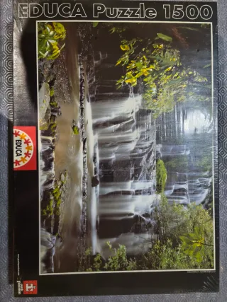 Puzzle de la marca Educa con 1500 piezas que representa una hermosa cascada. - Imagen de una cascada en un entorno natural. - 1500 piezas para un desafío entretenido.