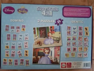 Pack de juegos de mesa de Disney Sofia. - Incluye 4 juegos: Dominó, Identic y 2 Puzzles. - Puzzles de 25 piezas. - Edad recomendada: 3+ años.