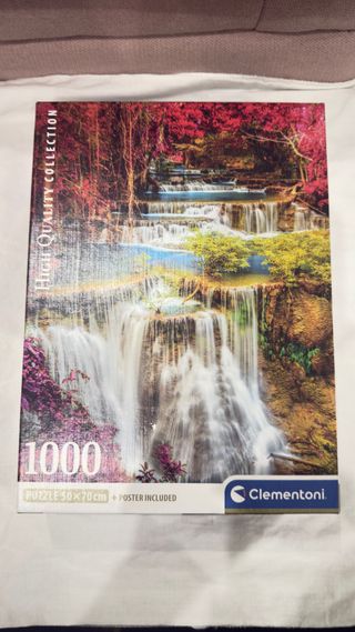 El objeto de la imagen es un puzle Clementoni de 1000 piezas. Imagen: Cataratas Tailandesas Coloridas (Colourful Thai Falls). Número de piezas: 1000. Dimensiones aproximadas del puzle montado: 50 x 70 cm.