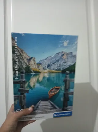 Puzzle de 500 piezas de la marca Clementoni, con una preciosa imagen de un lago de montaña y un bote. - Sin usar. - Alta calidad.