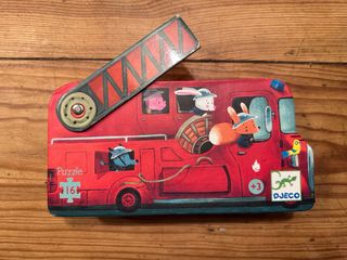 Set de tres puzzles de la marca Djeco con temática de bomberos. Ideales para los más pequeños. - Puzzle de 16 piezas. - Puzzle de 24 piezas. - Puzzle de 36 piezas.
