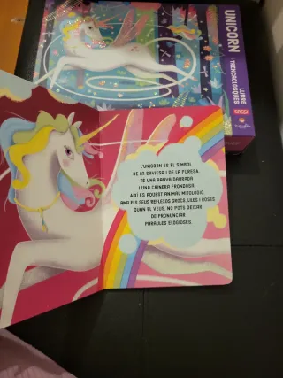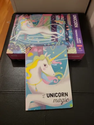 Set de puzzle y cuento infantil con temática de unicornios. Ideal para los más pequeños. - Puzzle de 100 piezas - Cuento L'Unicorn màgic en catalán.