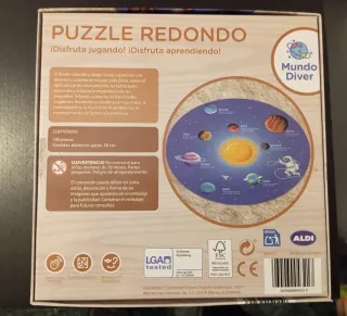 Puzzle redondo del sistema solar de Mundo Diver. - 108 piezas. - Recomendado para edades de 4 a 6 años. - Fomenta el juego y el aprendizaje.