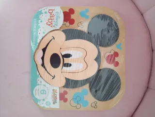 Puzzle de madera con diseño de Mickey Mouse de Disney Baby. Ideal para los más pequeños. - Incluye 6 piezas. - Material: Madera. - Edad recomendada: 12+ meses.