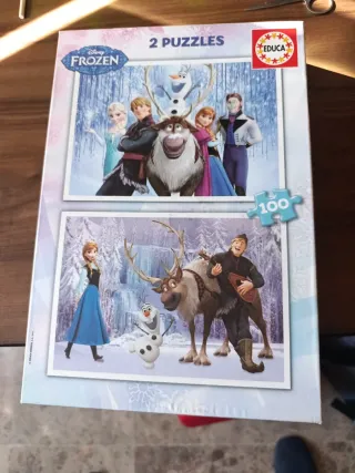 Pack de dos puzzles infantiles de la película Frozen. - Incluye dos puzzles de 100 piezas cada uno. - Diseños con los personajes de Frozen. - Marca Educa. Mi hija hizo un garabato en la cara de un personaje de la caja